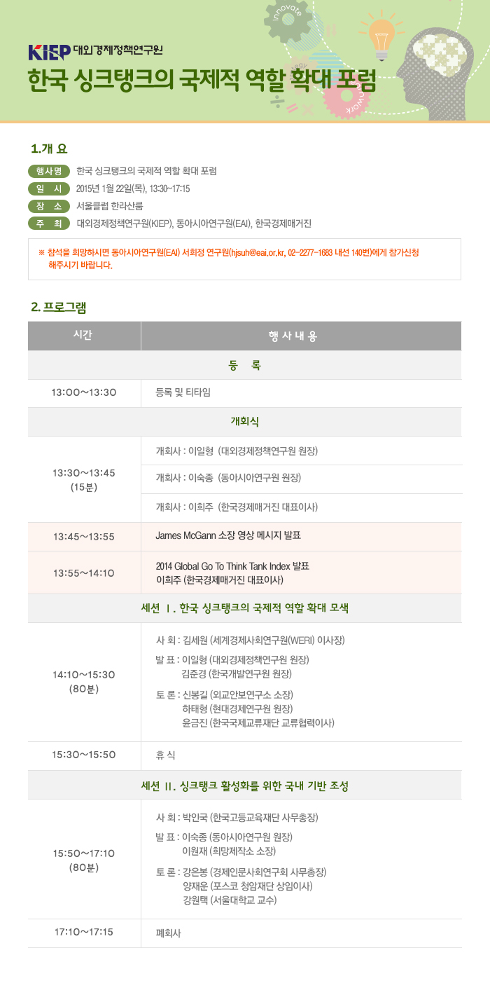 1079 | 일반공지 | '한국 싱크탱크의 국제적 역할 확대 포럼' 개최 | 2015/01/16 | ![]() |