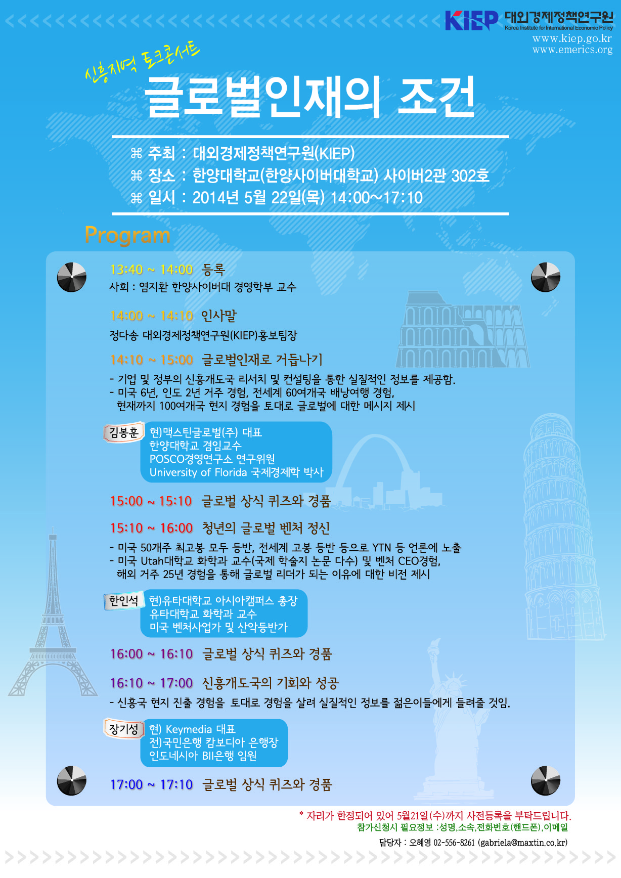999 | 일반공지 | [제1차 신흥지역 토크콘서트] 글로벌 인재의 조건 | 2014/05/14 | ![]() |