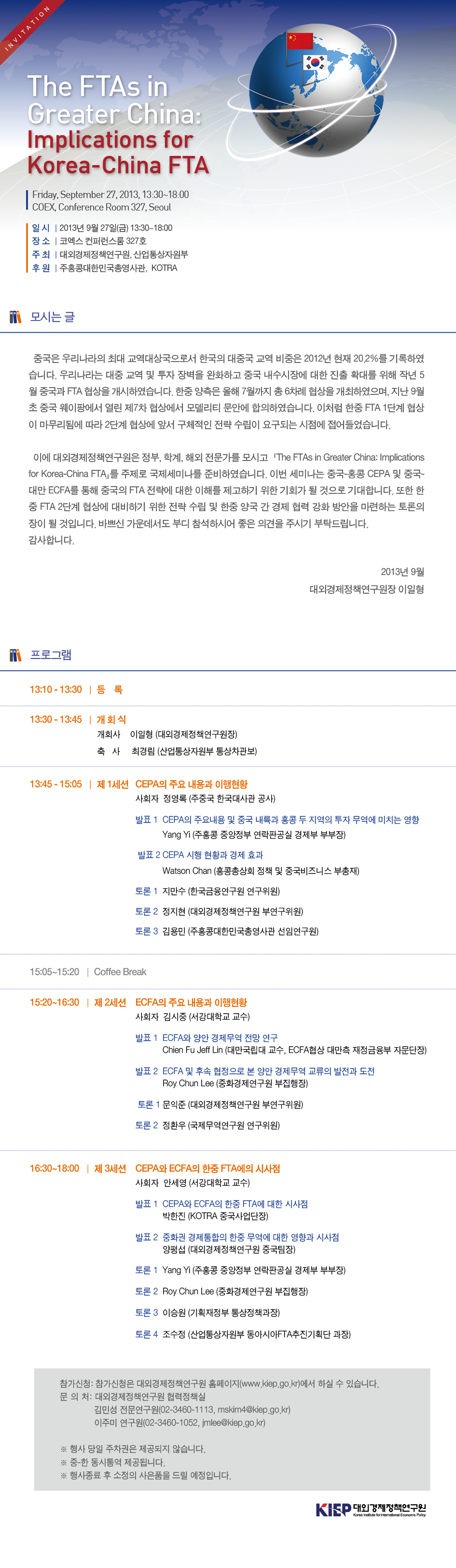 925 | 일반공지 | [세미나] The FTAs in Greater China: Implications for Korea-China FTA | 2013/09/23 | ![]() |