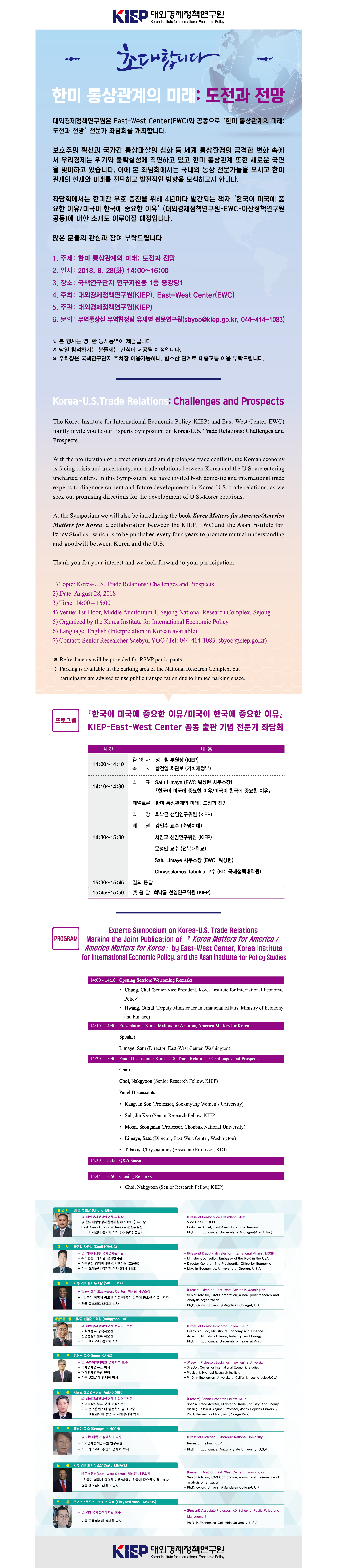 | 701 | [Symposium] Korea-U.S. Trade Relations: Challenges and Prospects | 2018/08/21 | ![]() |