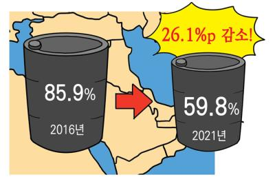 대중동 원유 수입 비중 5년 간 26.1%p 감소 발행일 2022/04/04