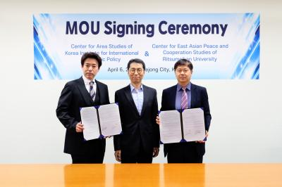 KIEP 세계지역연구센터, 일본 리츠메이칸대학 동아시아평화협력연구센터와 MOU 체결대외경제정책연구원 세계지역연구센터(CAS-KIEP, 소장 이권형 선임연구위원)는 4월 6일(목) 세종시에서 일본 리츠메이칸대학 동아시아평화협력연구센터(CEAPCS, 센터장 나카토 사치오 교수)와 MOU를 체결했다. 리츠메이칸대학 동아시아평화협력연구센터는 동아시아의 평화 및 협력과 관련된 주요 현안들에 대해 초당적 정책 분석과 높은 수준의 연구를 수행하고자 설립됐으며, 한일관계를 포함하여 중국과 러시아, 북한, 미국 등 동아시아 주요국 사이의 양자관계 및 역내 공통 문제에 대해서 학제적 관점에서 연구를 진행하고 있다. 체결식에 참석한 나카토 사치오 센터장은 “두 연구기관 사이의 활발한 학술교류를 통해서 한일관계 개선뿐만이 아니라, 동아시아 역내 평화와 번영에 기여할 수 있을 것으로 기대된다”고 말했다. 이권형 소장도 “경제안보의 중요성이 증대되고 있는 가운데, 경제와 외교·안보 영역에 각각 특화된 두 연구기관이 협력을 강화함으로써 한·일 및 동아시아 역내의 경제안보 연구 발전에도 기여할 수 있을 것으로 생각된다”며 기대감을 나타냈다.두 기관은 앞으로 협동 연구와 공동 세미나 개최, 연구 정보 및 연구 인력 교류 등을 통해 협력해 나갈 예정이다. 이날 체결식을 전후해서 일본측 참가자들은 KIEP의 정성춘 부원장 및 일본동아시아팀 연구자들과도 교류의 시간을 가졌다. - 행사명: KIEP 세계지역연구센터, 리츠메이칸대학 동아시아평화협력연구센터 MOU 체결식- 일시: 2023년 4월 6일(목), 16:30~17:30- 장소: 대외경제정책연구원 4층- 주최: 대외경제정책연구원(KIEP)- 문의: 세계지역연구센터 허재철 부연구위원(jcheo@kiep.go.kr)일본측 참석자: 센터장 나카토 사치오(Sachio Nakato) 연구원 바바 카즈키(Kazuki Baba)작성자 기관담당자 작성일 2023/04/06 조회수 1,708