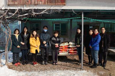 KIEP, 설맞이 나눔활동 진행연구원에서는 설맞이 나눔활동을 실시하였다. 명절을 맞이하여 주변의 불우이웃을 대상으로 나눔실천의 기부활동을 진행하였다. 이번 나눔활동은 취약‧소외계층에 대한 공공기관 구성원의 일환으로서 사회적 책임을 이행하고자 하는 취지에서 실시하였다. - 일시: 2014. 1. 22(수) 10:00~15:00 - 장소: 하남시 감이동 소재 소망의 집(정신지체 장애우 아동 보호시설) - 내 용: 점심식사 배식, 청소, 지원물품(쌀) 지원, 성금 기부 등작성자 최고관리자 작성일 2014/01/22 조회수 2,233