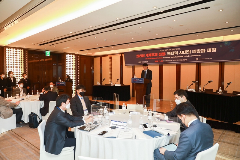 대외경제정책연구원(KIEP)은 11월 25일(수) 서울 웨스틴 조선 호텔에서 국제통화기금(IMF)과 제10차 KIEP-IMF 공동컨퍼런스를 개최했다. KIEP는 2011년부터 IMF와 연례적인 컨퍼런스 개최를 통해 차년도 세계경제를 전망하고, 안정적이면서 지속가능한 성장을 위한 정책 방향을 제안해오고 있다. 올해 컨퍼런스에서는 2021년 세계경제 전망과 더불어 코로나19 팬데믹 시대의 예방과 재활방안에 대해 논의했다.